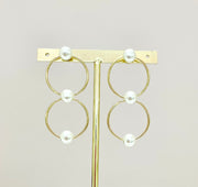 Aretes de Poste Y Mariposa con Diseño Doble Circulo y Tres Perlas