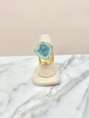 * Anillo texturizado con piedra druzy celeste en chapa de oro.